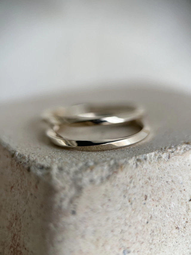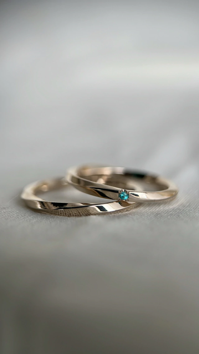 Aliança em Ouro 18k (cor do Ouro à escolha do cliente - podendo ser Ouro Branco, Ouro Champagne, Ouro Amarelo ou Ouro Rosa), robusta (não é uma peça frágil ou fina), com design torcido. Por possuir um design único e moderno, também pode ser utilizada como anel ou aparador. Aliança confortável, você não sente o torcido pois as quinas internas são arredondadas.