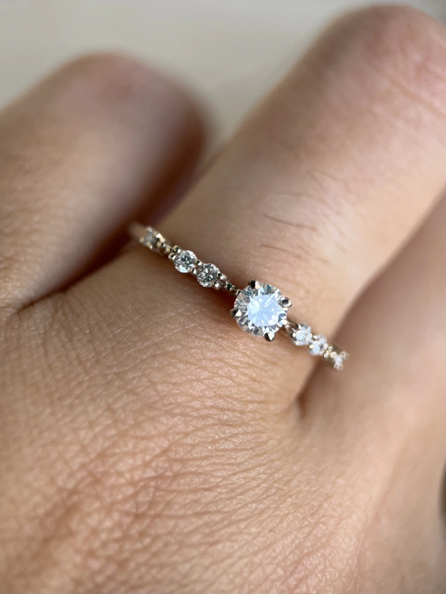 Com um design elegante e refinado, o Anel Romantique é um solitário clássico, delicadamente montado em uma configuração elegante que apresenta um Diamante central de 20pts ou 25pts. Este anel possui um acabamento polido, sendo o aro adornado com em cada lateral com três diamantes (2 de 3pts e 1 de 1pt), dispostos de forma sutil e levemente espaçados. Um modelo perfeito para quem busca uma joia sofisticada e com um toque de romantismo!