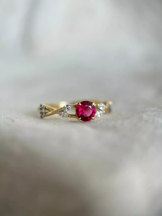 ? Rubi 5mm e Diamantes 3x1.5mm em lapidação navete.