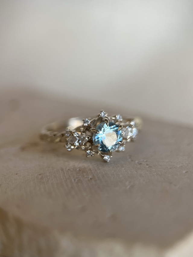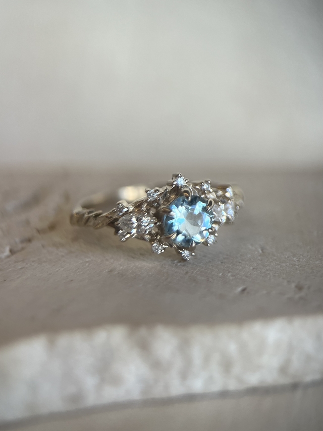 ✦ Pedra: Água Marinha 4mm, Diamantes Navete 4x2mm e Redondos nas laterais